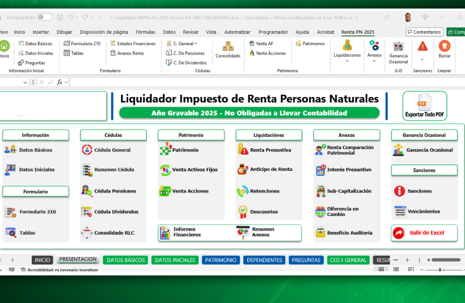 Contenido del liquidador en Excel para Proyección del Impuesto de Renta de Personas Naturales por el año gravable 2025
